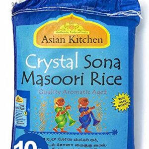 Asian Kitchen Crystal Sona Masoori Aged Rice 10-Pound Bag, 10lbs (4.54kg) Short Grain Rice ~ All Natural | Gluten Friendly | Vegan | Indian Origin | Export Quality